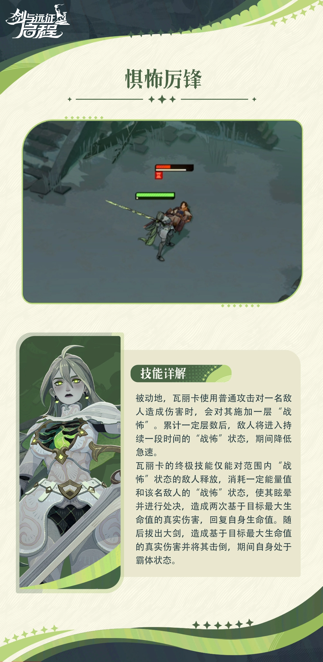 瓦丽卡的必杀被动可以让普攻对目标施加一层战怖效果。