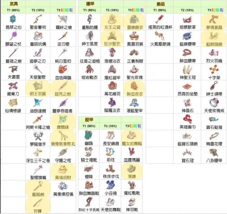 T3的装备可从三色池中获取。