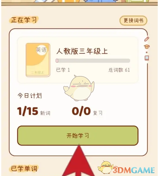2. 进入单词本功能,随后开启开始学习功能。