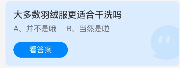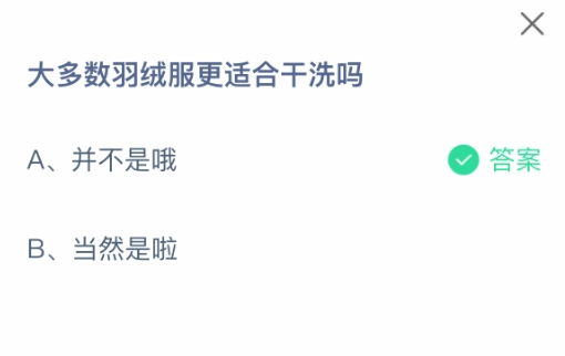 大多数羽绒服更适合干洗吗?这就是支付宝蚂蚁庄园2025年2月22日的最新答案。若想获取更多精彩内容,欢迎点击关注firedg,小编会持续为您更新!