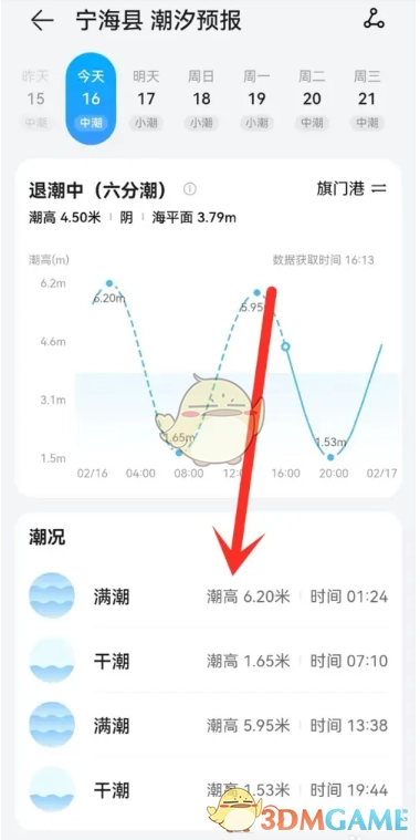 5、当您进入潮汐时刻页面后,就能查看潮汐表。