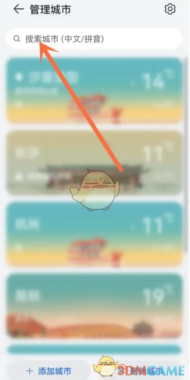 2. 前往管理城市页面,在该页面搜索城市名称。