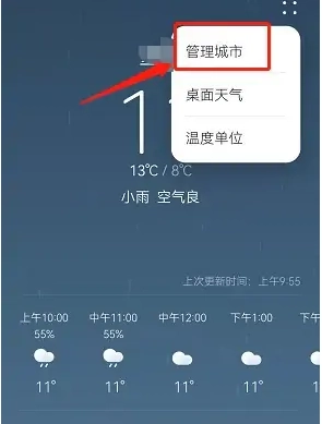 1. 开启华为天气应用,轻点右上角的四个小点