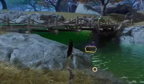 2、在前方的桥下就能够看到【宝箱】。