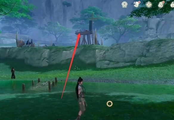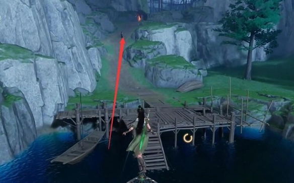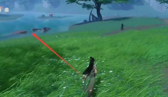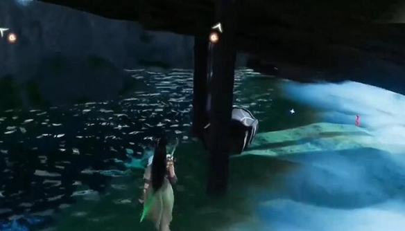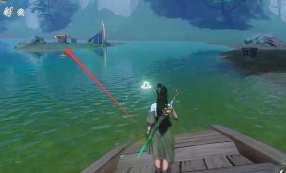 8、将视角朝北转动,看向河中,能看到一艘断了的船,在那里有【宝箱】。