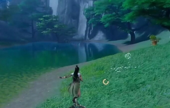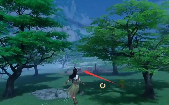 3、视角后转向前面的大树过去。