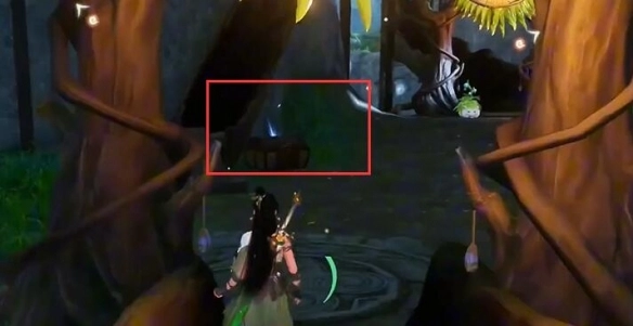 4、在前方大树下面就能够看到【宝箱】。