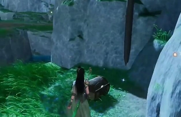 30、继续向南边飞,可以在石头旁看到【宝箱】。