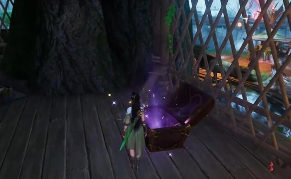 10、取完之后继续朝东边行进,在前方的大树下能够获取到【宝箱】。