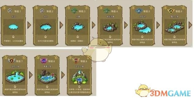 4当达到4级及以上时,会自动吐出陨石,且有较低概率出现遗迹,遗迹的最高等级为4级。而在4级以下,水洼将会转变为蘑菇。