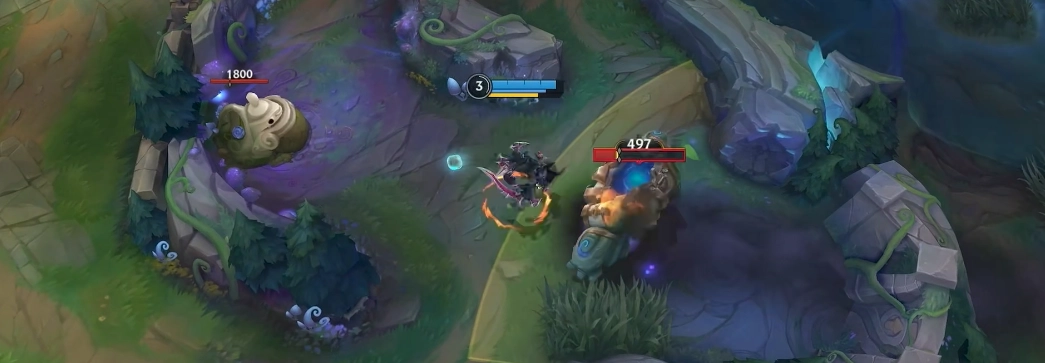 被动技能“暗影之刃”,每间隔14秒,他接下来的那次普通攻击,会对周边的敌方单位造成物理伤害。而且,每击中一个目标,就能恢复自身的生命值。每次进行普通攻击,都能让该被动技能的冷却时间减少1秒。不过,对小兵造成的伤害会降低50%,与此同时,从小兵身上获取的治疗效果同样降低50% 。