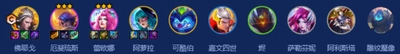 佛耶戈、厄斐琉斯、蕾欧娜、阿萝拉、可酷伯、嘉文四世、烬、萨勒芬妮、阿利斯塔