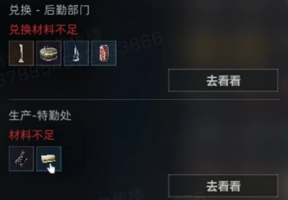 特勤处产出物品包括:损坏的热像仪、木板以及灯管。