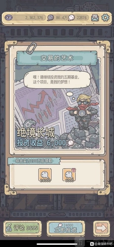 以上便是小编梳理的有关《最强蜗牛》里《交易的艺术》是否值得购买的建议内容。在游戏前期,《交易的艺术》并不值得入手,唯有当玩家在后期拥有强大的战斗力时,才建议购买!