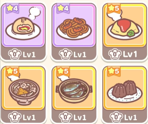 在食谱方面,内容都十分简单易懂。前期主要以四星食物为主,且大多是面食,像米饭、寿司、面包等都包含在内。这些食物的制作流程简便,基本一步就能完成。并且,随着烹饪次数增多,对这些食物的烹饪熟练度会不断提升,届时就能一次烹饪出好几道美食,为其他角色供应美味佳肴。