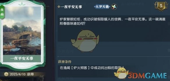 4、最后通过对话,即可完成逸闻,并获取说英雄卡【一夜平安无事】。
