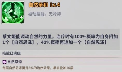 蔡文姬在治疗领域表现格外突出,不仅能给予治疗,还可同时附加【持续治疗】状态,增强队伍的续航能力。而且其被动技能所获的【自然恩泽】效果,能进一步强化治疗能力。