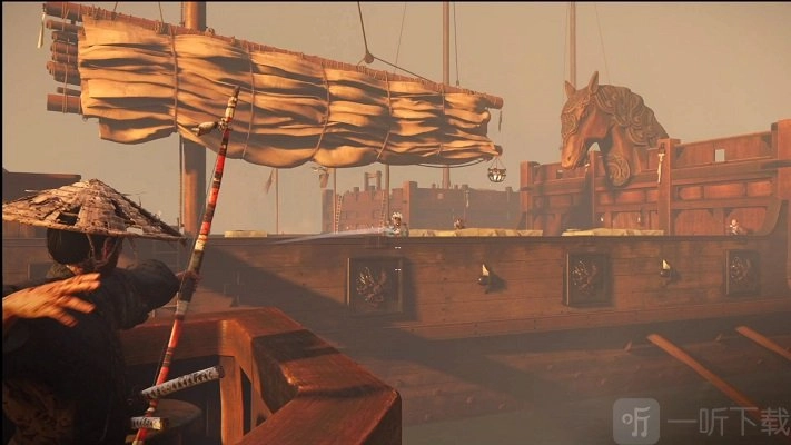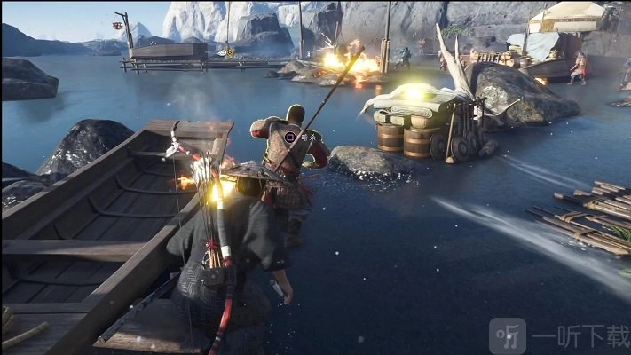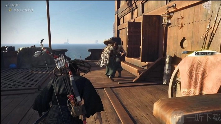 旁边的船会有弓箭手攻击,建议跳船过去杀敌。