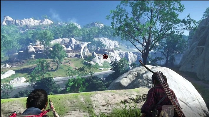 随后,与结奈一道抵达蒙古人的俘虏营外围,循着结奈先前选定的观察点走去,思索该如何潜入。在此过程中,需借助右摇杆的移动来确定进入位置。