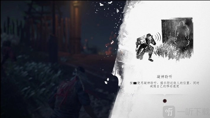剧情结束后,会新增一个名为凝神聆听的技能。按下触摸板即可发动该技能,发动后能够观察到敌人的行动与位置,但发动此技能时,角色脚步会变慢。