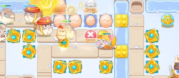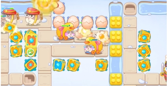 3、于左上角构建一个蛋壳,运用卡牌对左侧的道具展开攻击。
