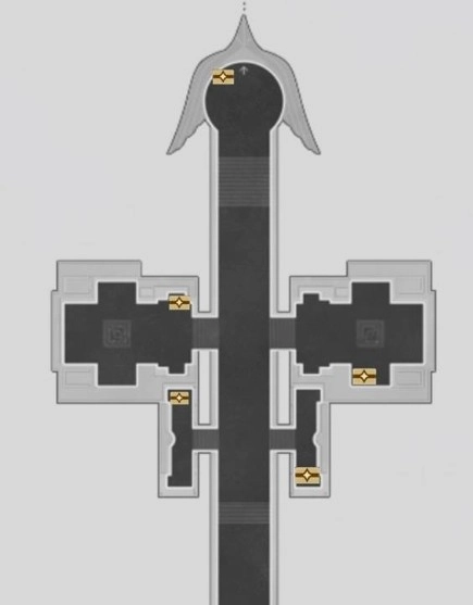 黎明云崖的地图呈现出狭长的结构,小编把整个区域划分成三段,以此来呈现宝箱的分布情况: