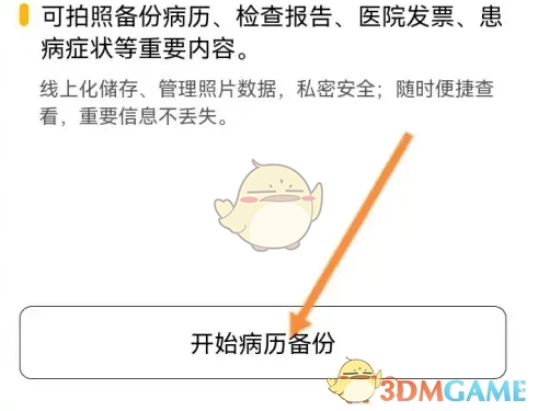 4、选择下方的开始病历备份选项。