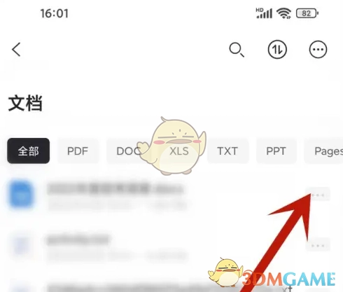 2. 进入文档列表之中,挑选文档,点击右侧的“三个点”图标。