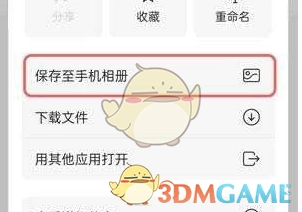 2、接着在弹出的选项里,挑选【保存到手机相册】。