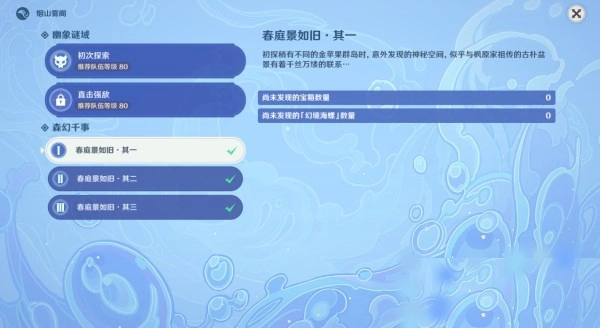 完成“春庭景如旧”任务后,传送到金苹果群岛布丁岛西北边的传送锚点,触碰锚点旁的盆景,选择“烟山雾阁”就能进入秘境(另一个选项“更改盆景布局”可用来改变岛屿的形状)