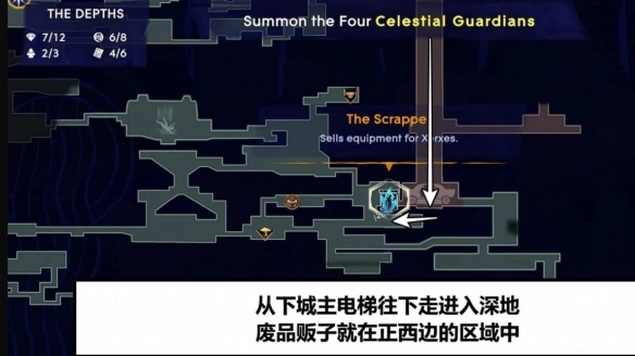 废品贩子身处深地,可用薛西币购置护符,其位置如下图所示: