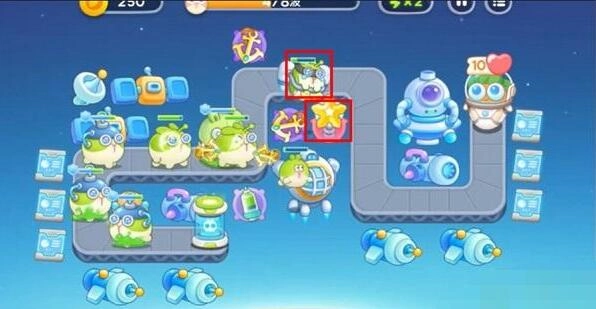 4、最后,我们只需把船锚、毒针筒、导弹塔还有五角星等防御塔放置妥当并全部升满级,就能顺利通关。
