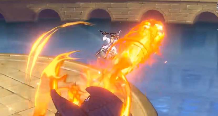 他于地面施展普攻时,可打出一套五段连击,最后一击更是能将对手挑飞至半空。而在空中,其以四段攻击收尾的招式,会迅猛下劈,径直把敌人砸回地面,整个过程节奏明快,打击感十足。烬的技能设计极具视觉冲击力。“炎皇”这一技能,可释放出一道长长的火焰直线,无论在地面还是空中施展,那火柱都仿佛带着“来者皆烧”的气势。空中释放时更为带感,头部一甩宛如弹弓,回弹瞬间直接轰出火浪,帅气得无与伦比。