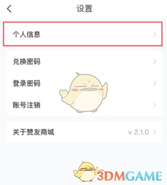2、在列表中选择【个人信息】,点击进入。
