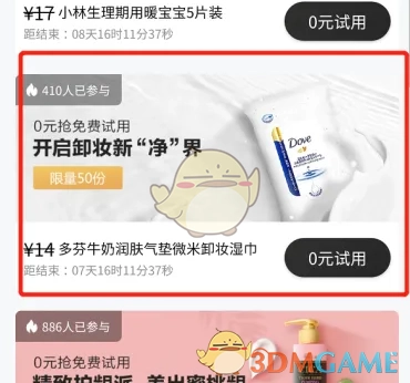 2、在“0元试用”专区挑选你心仪的试用产品,这里以图中产品作为示例。