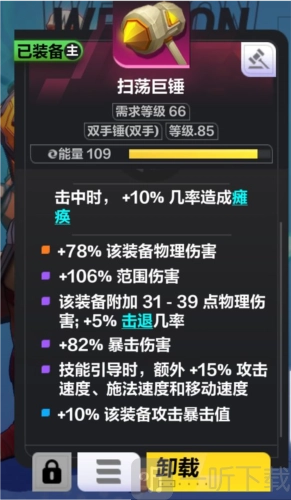 其余防具选用紫装来补充血量和提升抗性就行。武器则选择双手锤。
