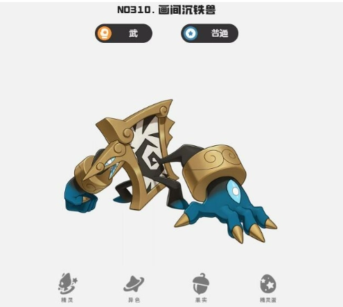 紧接着,画间沉铁兽作为一只特色鲜明的武系精灵,有着独特之处。它兼具武系与机械系的双重属性,凭借技能“铁壁重拳”,在进行防御后可对敌人展开反击,让敌人猝不及防。其“墨甲”特性能够显著降低远程攻击所带来的伤害,对于偏好防守反击的玩家而言,无疑是绝佳之选。要是你更看重物理输出,不妨选择勇敢性格,以此进一步增强它的物攻能力。