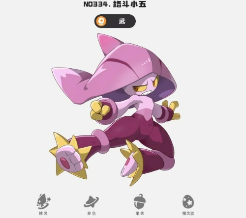 格斗小五,作为一只以速度见长的武系精灵,其速度种族值极高。凭借技能“连环踢”,它能在战斗中快速发起多次攻击,打出可观伤害。然而,因其防御薄弱,最好搭配具备防护能力的队友协同作战。只需完成新手教程,就能得到这只精灵,它在前期组建队伍时极为适用。