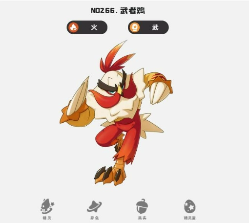 最后,武者鸡是由晕晕鸡进化而来的强力物理输出精灵。依靠炎爆拳和折翼拳,它能构建起强大的打击链,一击命中,迅速击败敌人。当特定战斗条件触发时,其进化后的形态让它成为极为强悍的输出角色。