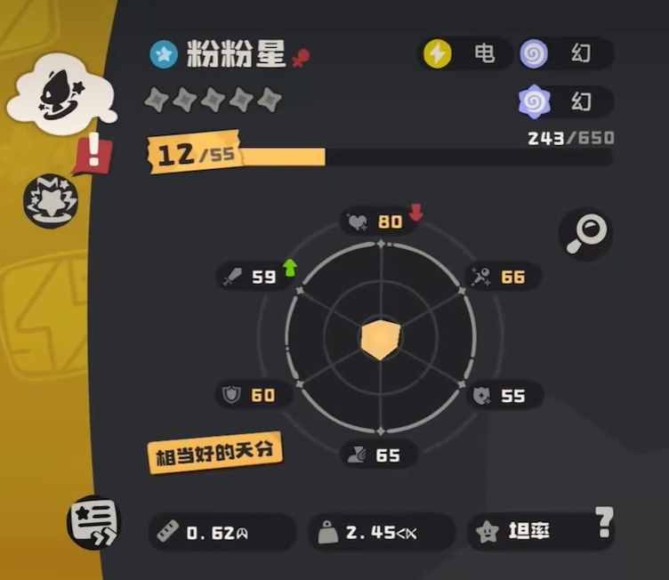 粉粉星的技能也颇具特色。首先,“猛烈撞击”是一招实用的物理攻击技能,能够对敌人造成不错的伤害。对于一些快速而脆弱的敌人,这一技能可以有效削弱敌方阵容。而“休息回复”则让粉粉星能够在战斗中恢复自身的生命值,保持较长时间的作战能力。这一技能尤其适合在耐力战中发挥作用。