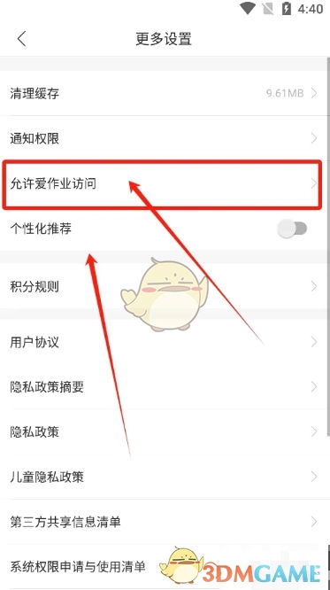 2、进入更多设置窗口点击“允许爱作业访问”。