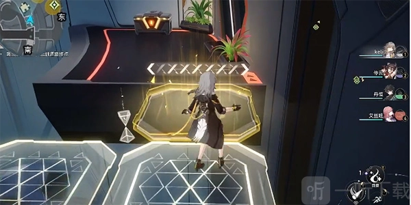 第三步:我们需要踩在这个发光的阶梯上面,我们按照顺序踩着通过就可以,按照阶梯的顺序走到对面,然后进入右手边的门;