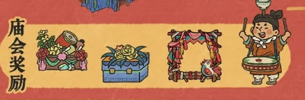 2、漫步于丰富多彩的庙会摊位间,收获「庙会闹春礼盒」「庙会晚钟礼盒」「庙会头像框」等各式各样的庙会奖励。