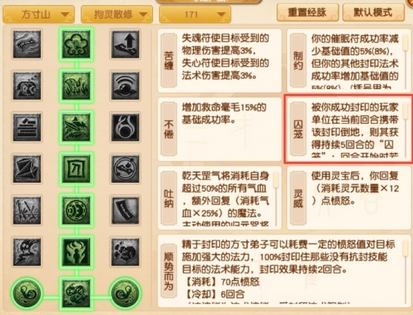 2、囚笼效果:回合开始时,若未被封印,将随机获得失心符或失魂符(持续1回合)。