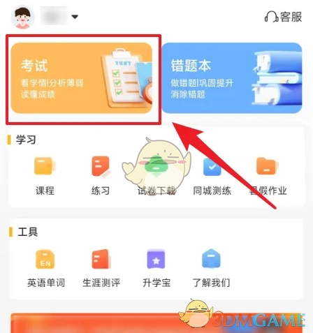 1. 打开【好分数家长版】界面,然后点击【考试】按钮。