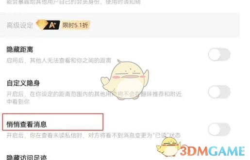 3、最后,点击开启【悄悄查看消息】,如此便完成操作。