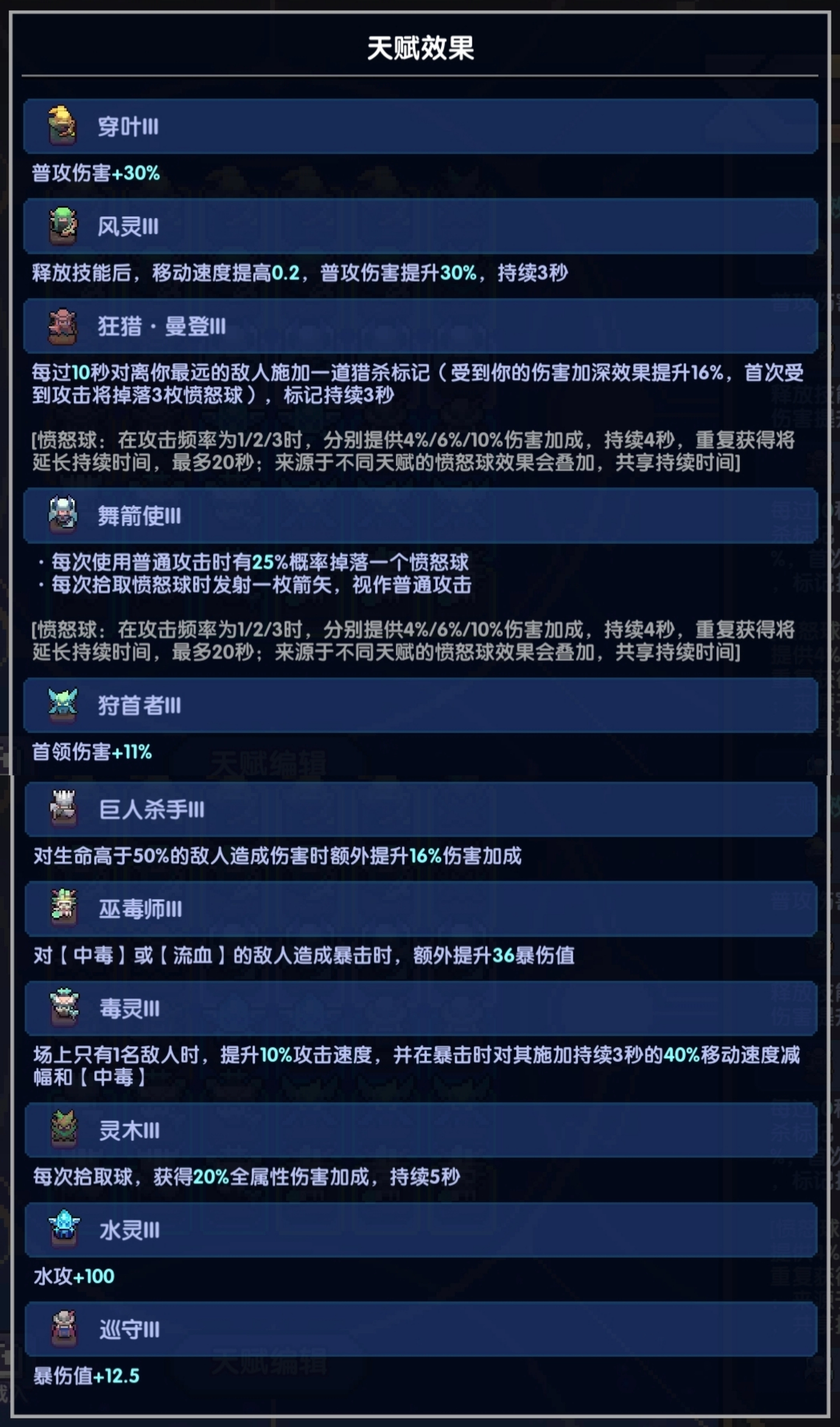 如果缺暴击或者穿透,则把巡守(12.5爆伤)、水灵(100水攻)换成猎魔者(200穿透)、兜帽客(5%暴击率)、主教(3%冷却)