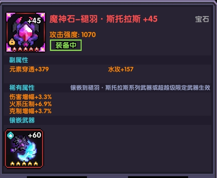 属性:水攻50、护甲穿透127、韧性削减6、元素穿透62