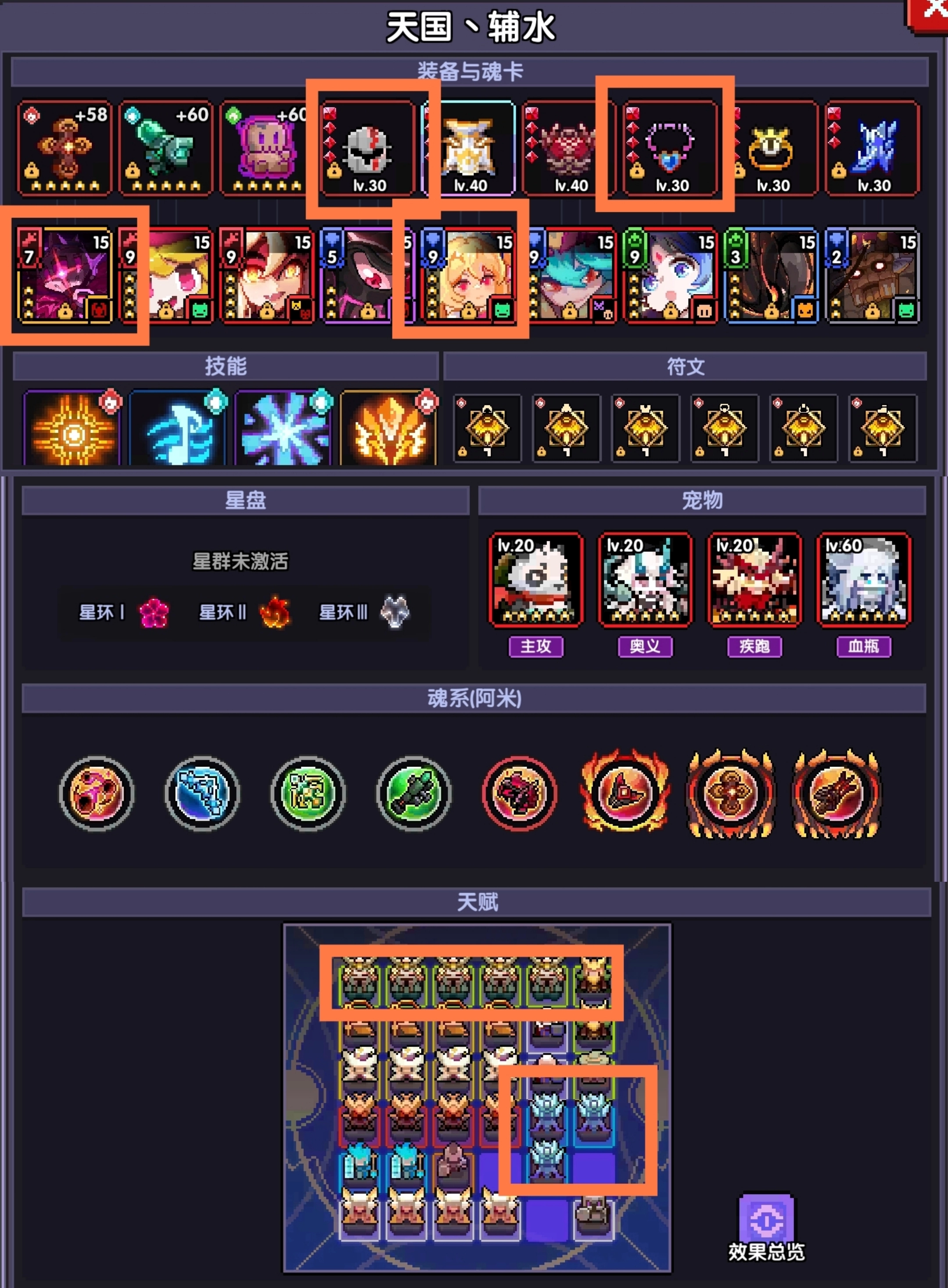 辅助搭配如下(框框里面是必带的,辅助武器、宠物搭配按照图里面的分配即可)