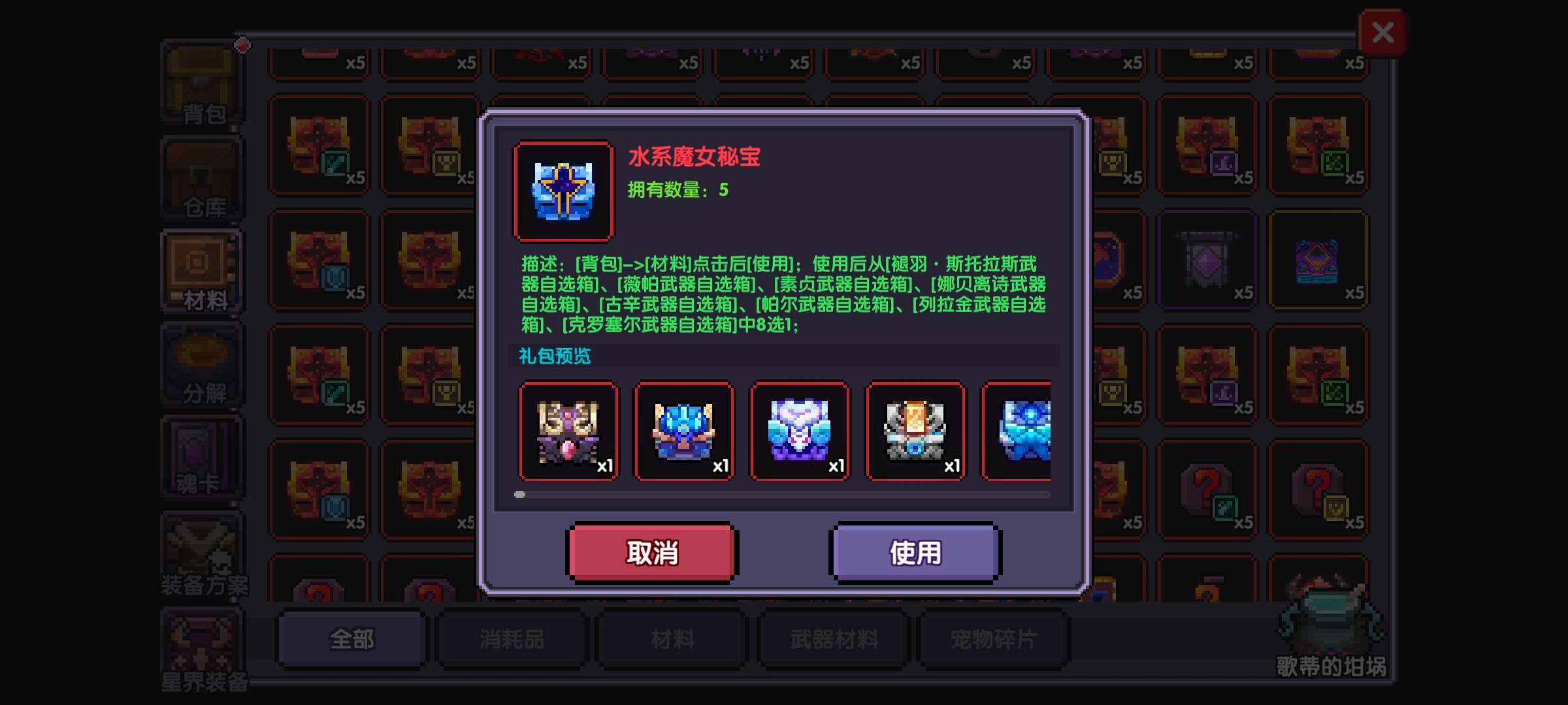 武器来源于黄金币宝箱以及钥匙,公会捐赠等,需要积累资源将武器做出来并升星升级洗练属性。